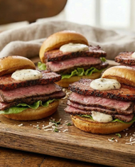 Rib-eye Steak Sliders with a Garlic Parmesan Cream Sauce